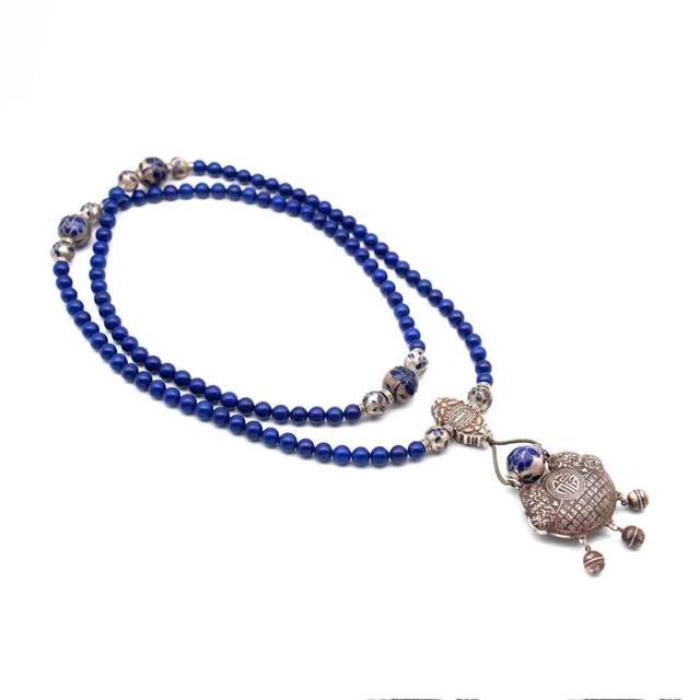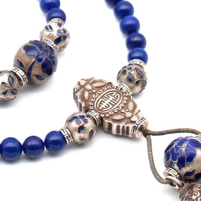 采用典藏级创汇期“燕京八绝”老银烧蓝珠
